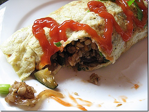 My mom used to make it for me when I was little enough to barely see over the counter, and when she was too busy running her piano academy, my sister made it for me when she was probably 10-12 years old. It’s that easy, a child can make it. I have fond memories of my sister trying not to tear the omelette as she handled it with her hands to wrap the fried rice. Sometimes she did it when it was too hot, and would wince at the heat.